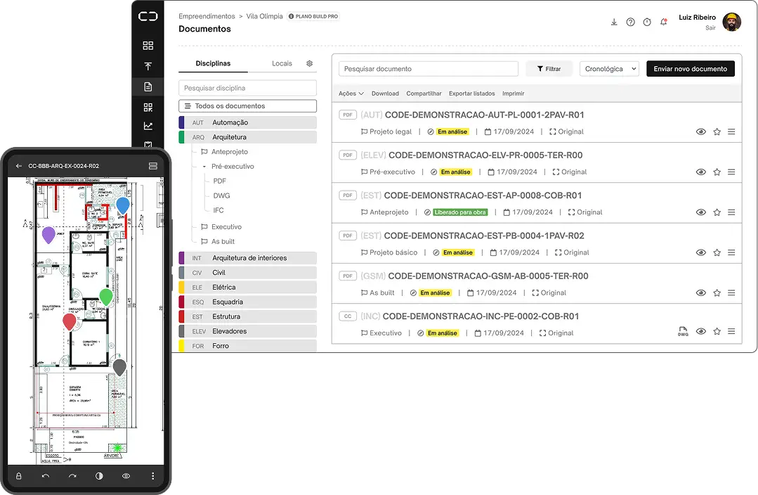 “A ConstruCode é a ponte que conecta os projetistas e escritório central com nossos canteiros em tempo real. Hoje todas as nossas obras se comunicam pela plataforma”.