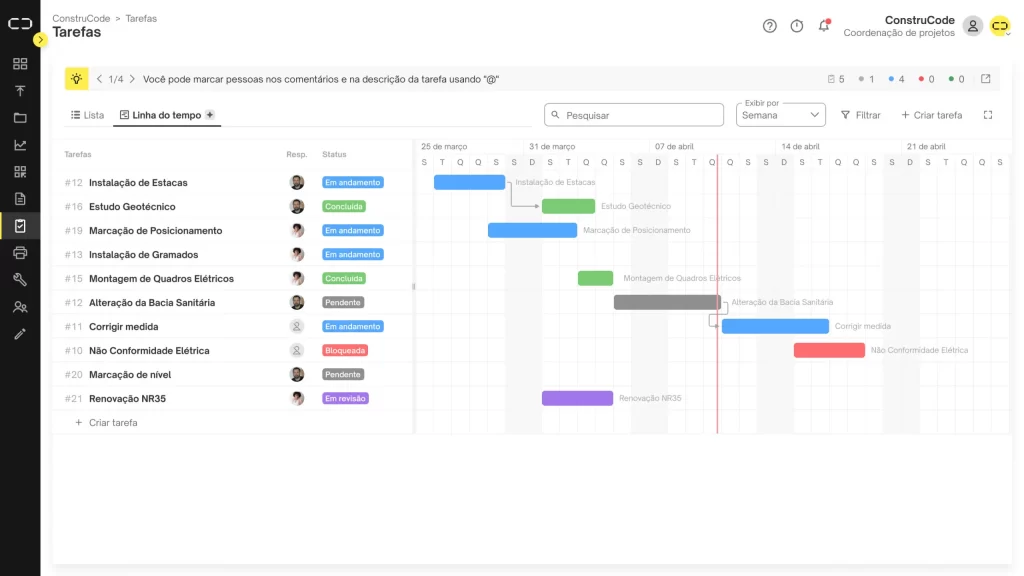 Vai muito além de um simples “concluído / não concluído”. Isso é essencial em um contexto onde o cumprimento de prazos é um dos maiores desafios, já que qualquer atraso gera custos extras, pressão sobre as equipes e insatisfação do cliente.
