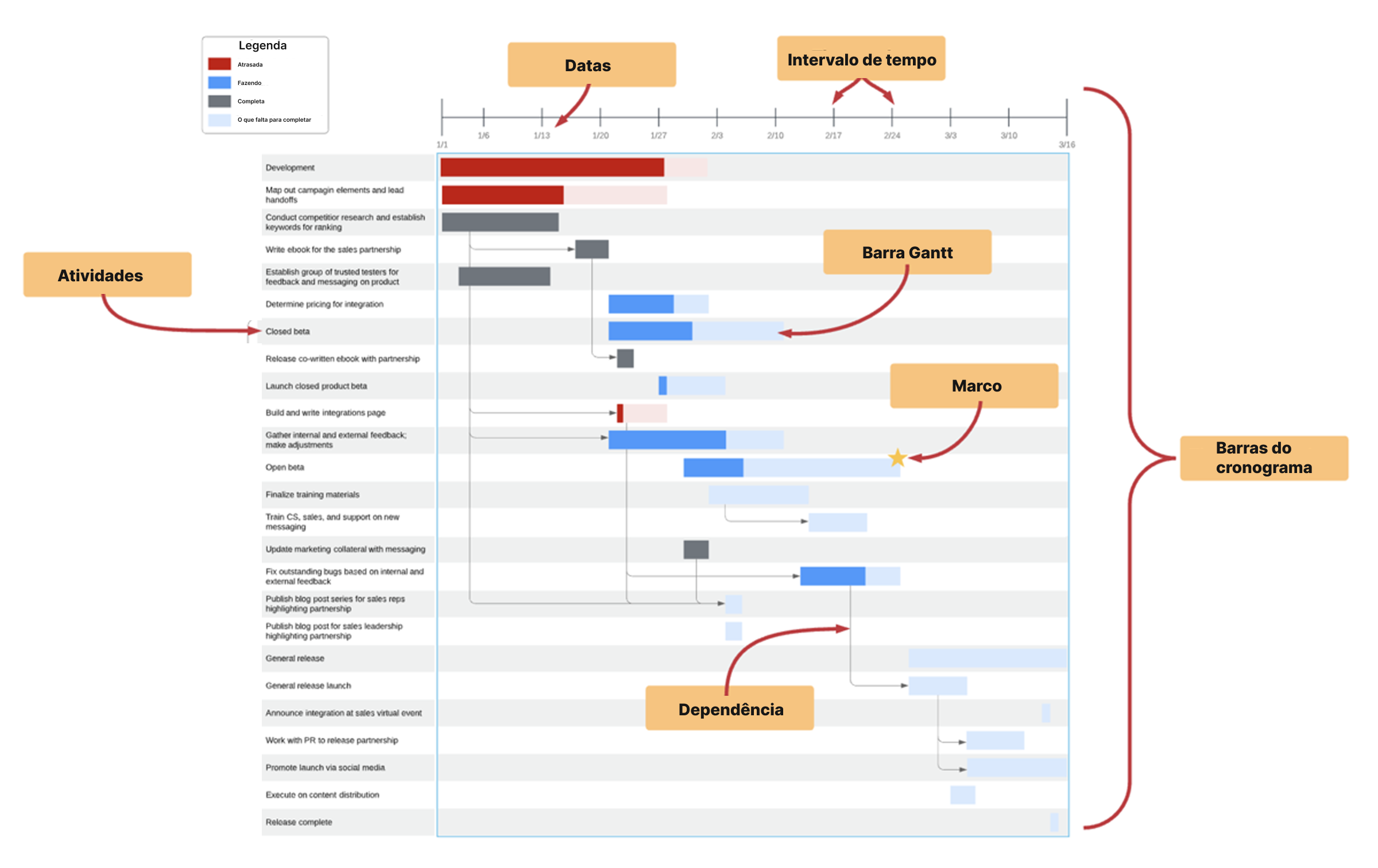 Ele organiza atividades ao longo do tempo, deixa claras as dependências, ajuda a controlar prazos e torna a comunicação mais objetiva.